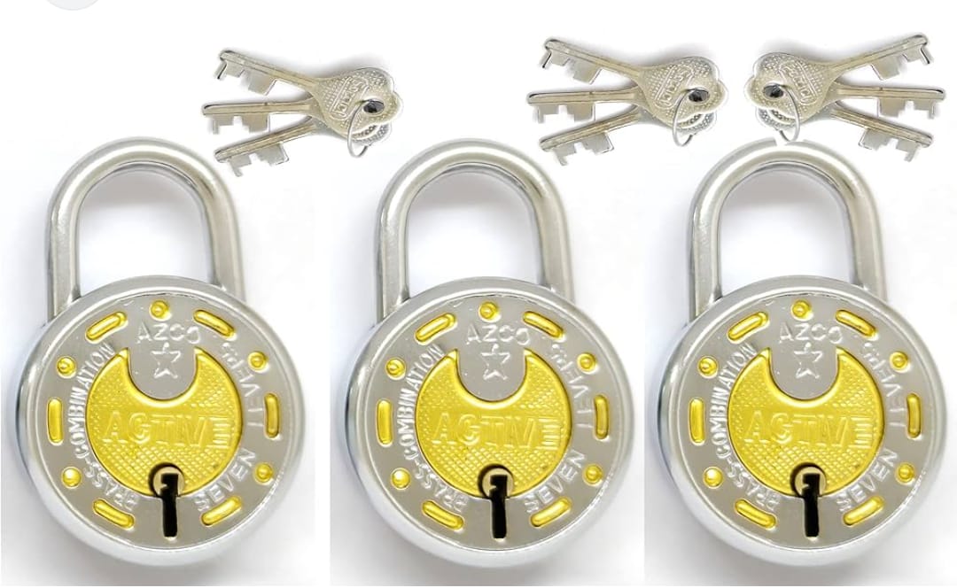 Adison brass and stainless steel 50mm padlock comes with two extra keys heavy duty superior quality door lock pack of 2 and get one free padlock