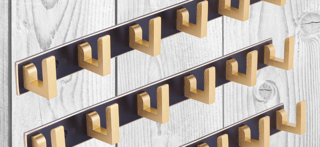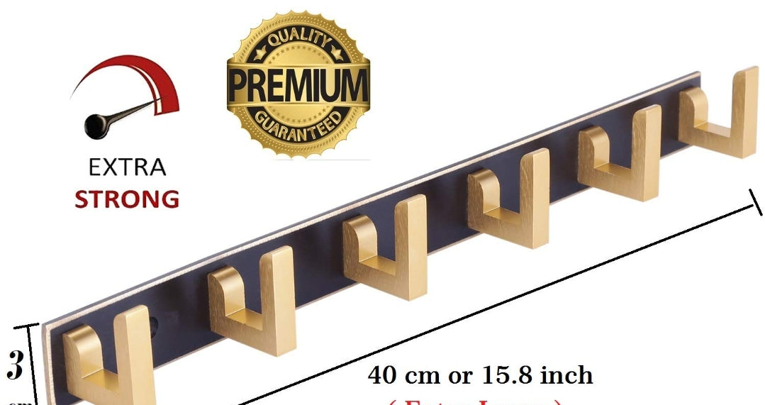 Adison bathroom hooks stainless steel can handle up to 1-2 kg weight golden brownish 6 hooks on one plate pack of two plates with screws
