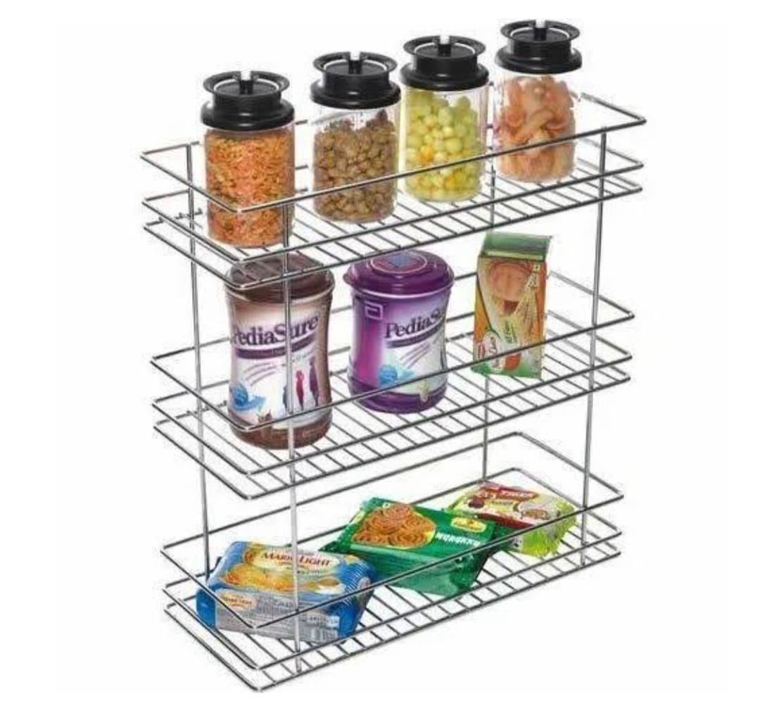 Adison bottle pull out 3 shelf basket stainless steel heavy duty kitchen storage organiser with all accessories and screws pack of one basket set