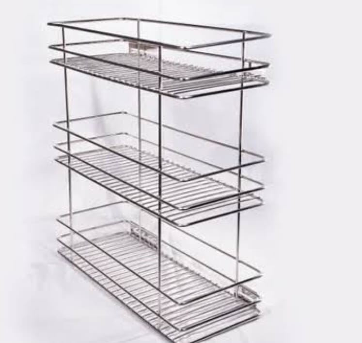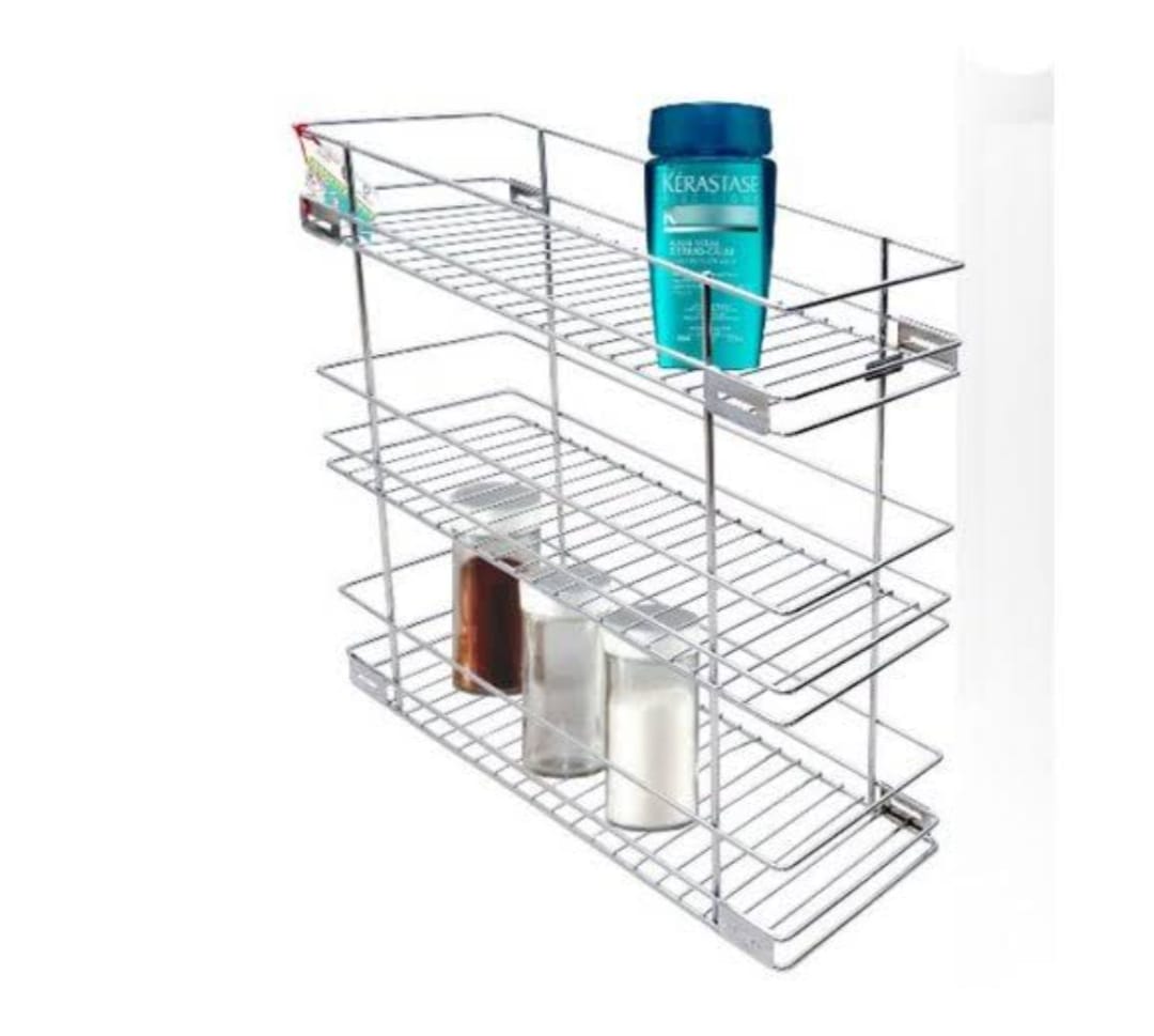 Adison bottle pul out three shelf basket stainless steel heavy duty comes with all screws and accessories kitchen storage organiser 3 shelf bottle pull out 4 inches basket