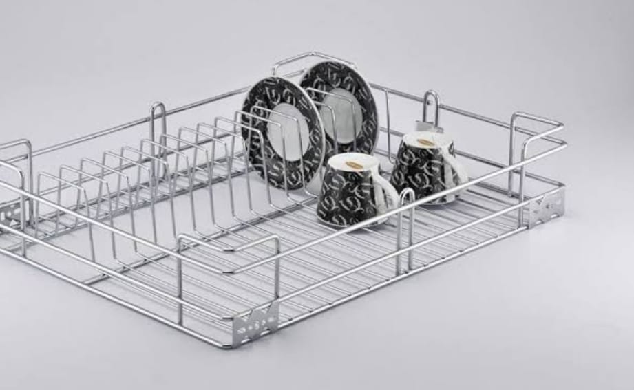 Adison stainless steel heavy duty cup and saucer basket pack of 1 basket comes with all accessories and screws heavy duty superior quality basket for kitchen storage and organisers